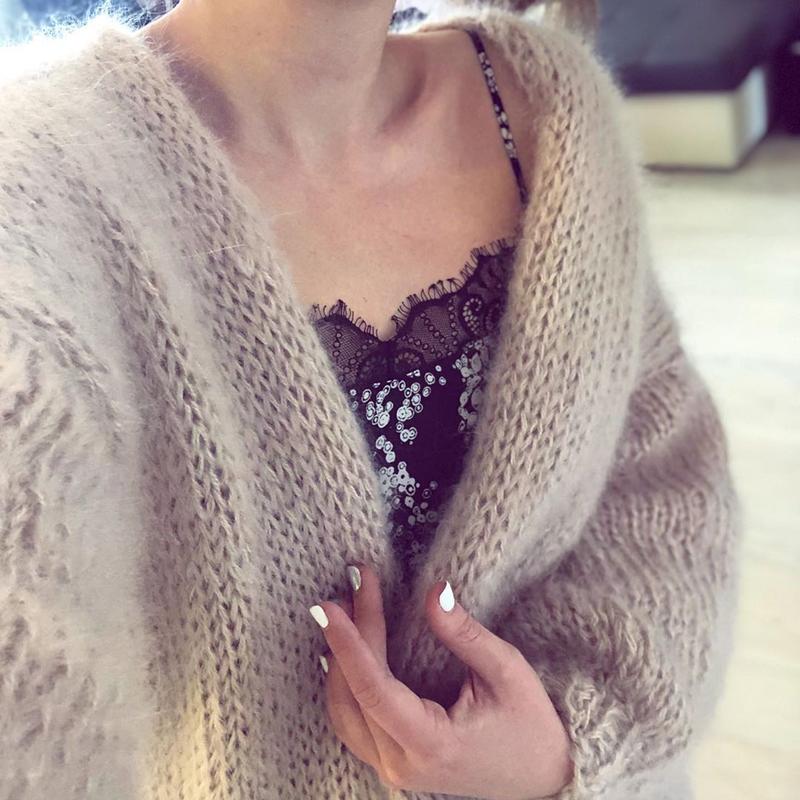 Пушистый кардиган оверсайз ручной вязки.