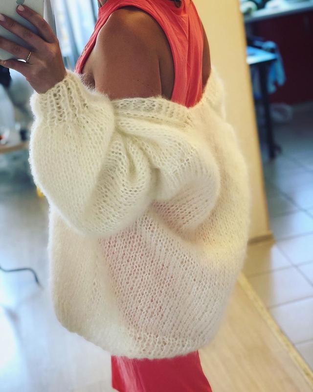 Пушистый кардиган оверсайз ручной вязки.