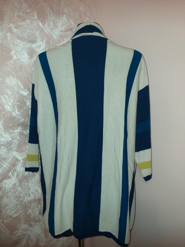 Розкішна річ,тонкий шерстяний кардиган.Гра кольорів,дуже стильно.Розмір м,л.Без дефектів,як новий.