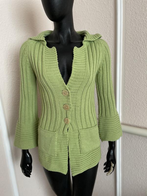 Вязаный зеленый объемный натуральный коттон кардиган длинный рукав свитер кофта тренд пуговицы pullоверсайз mangomandutiduti zaraстиль oldmoney