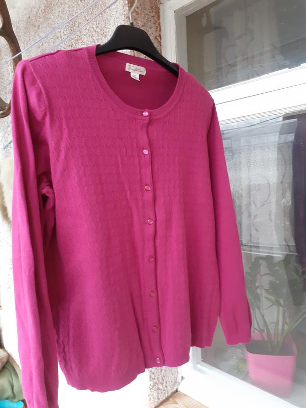 Кардиган малиновый натуральный ( 70% коттон - состав на фото) в идеальном состоянии. Причина продажи - очень яркий для дресс кода. Одевался пару раз и теперь скучает без дела.Размер указан 18. Ориентируйтесь по замерам. Длина 63 см, плечи 40,5 см, пог= пот 58-59см, мо низу резинка патент 51 см, высота проймы 20 см,бицепс 18-19 см, манжет 1/2 - 9 см, длина рукава по внутреннему шву 46 см.