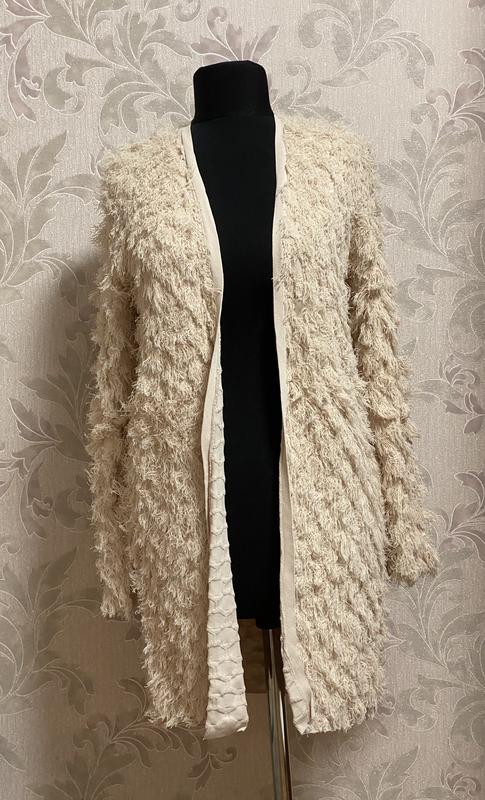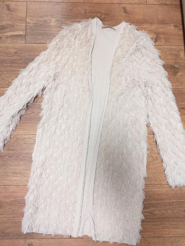 кардиган в очень хорошем состоянии, без застежки, по бокам карманы. Состав: 83% вискоза 17% полиамид; кофта имеет вес, она не легкая.