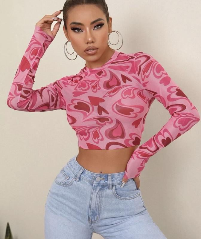 Топ лонгслів shein сітка пудрового, рожевого кольору