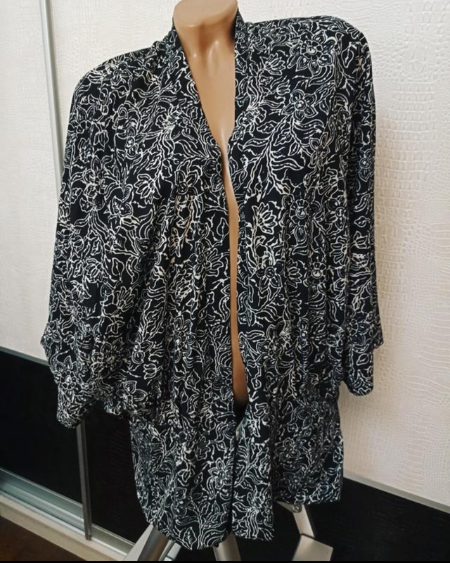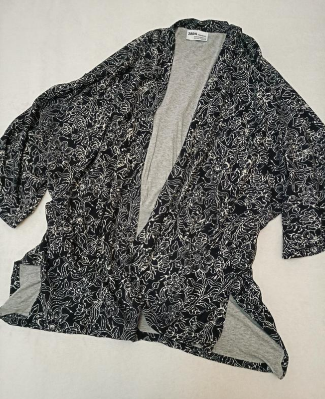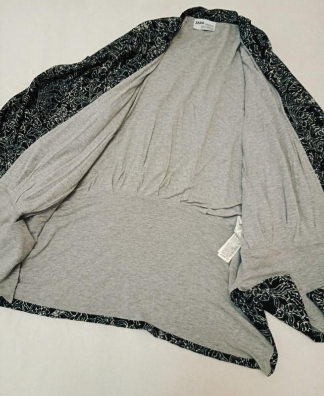 Объемная накидка Zara. Накидка с трикотажной подкладкой Очень интересный пошив Без застежки Рукав кимоно По бокам разрезы 44/46рДлина по спинке 75см95% viscose 5% elastane