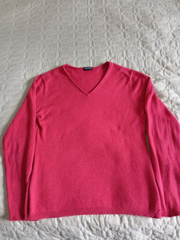 Мягкая, приятная к телу ткань. Бирки со составом срезаны, но я точно знаю, что это кашемир. Камера засветляет цвет и показывает как розово-красный, а на самом деле он терракотовый. Плечо 11, спина 37, длина 57, рукав 60, ПОГ 43