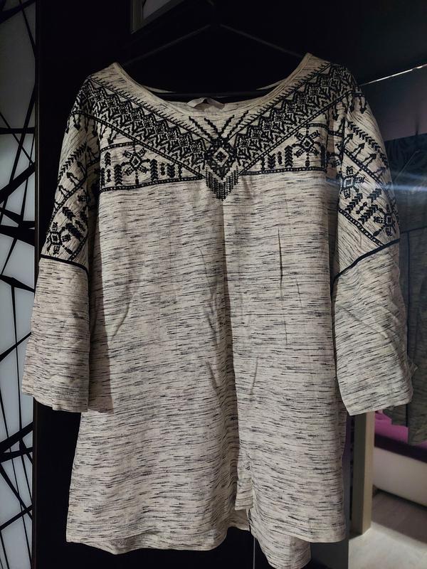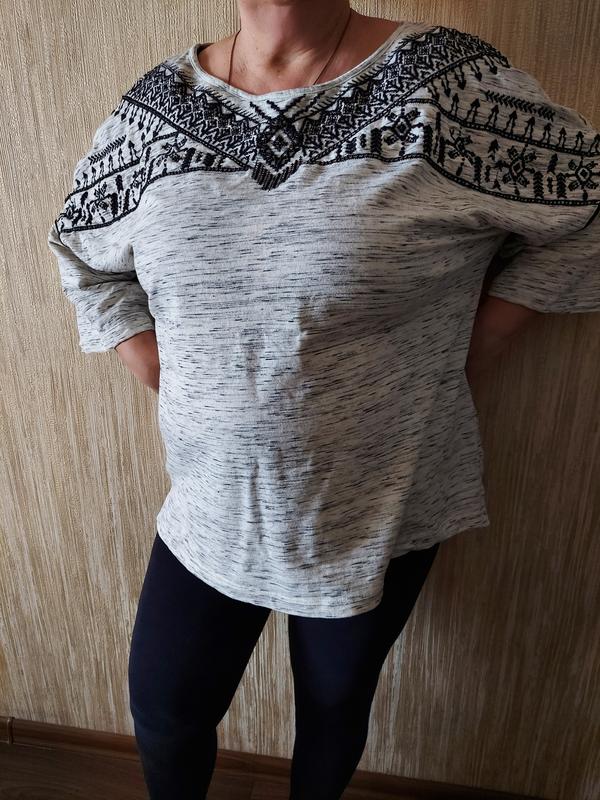 Шикарная кофта, реглан George вишиванка серый меланж в отличном состоянии. размер евро 50, подойдет на наш 56 размер. Может и на 58 размер будет. На фото моя мама, она похудела и реглан ей велик, она носит 54 размер. Реглан широкий. Состав ткани на бирке. Замеры по запросу. Спереди вышивка с бисером черного цвета.