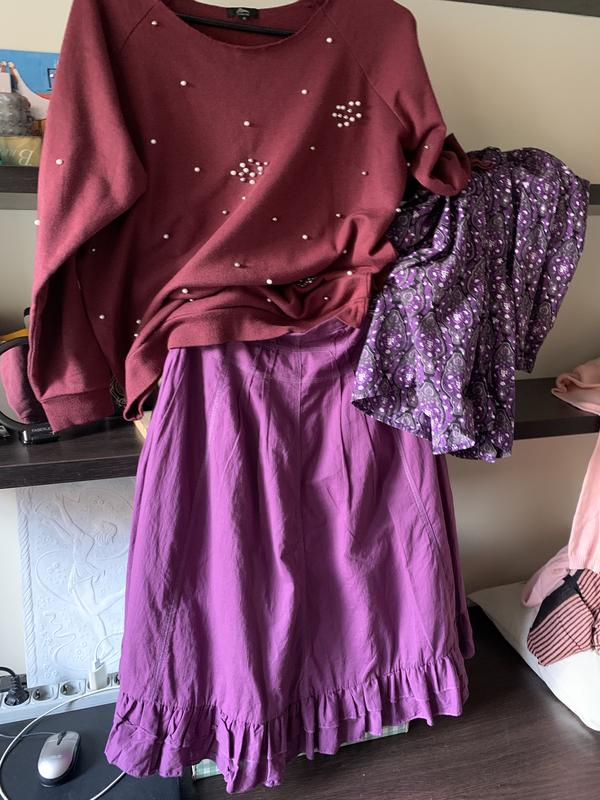 Оверсайз лонгслив коттон, отменные качества, с необработанным горлом( возможно сдвинуть на одно плечо(если девочка на С и худежка). Я одевала на М и он тоже отлично ложится( рукав-реглан, возможно комплектом как на 3фото(интересно-отплем). Но он самдомтатний и очень классн и оттенок, замеры дави.