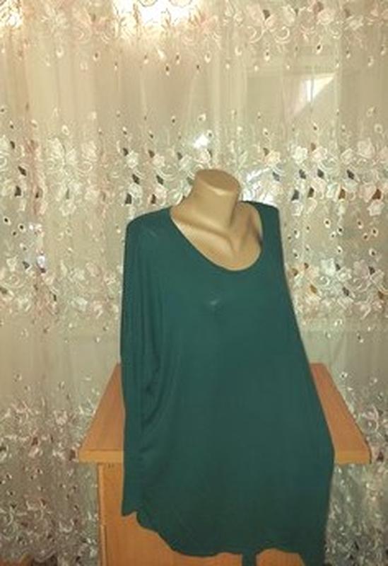 темно-зеленая легкая кофточка NEW LOOK с уголком на завязку . р.56-58 Тянется 97% вискоза ,3 % эластан.Состояние безупречное.Длина 77,ПОГ 74-85,низ п/о 65-80,рукав от шеи 66.