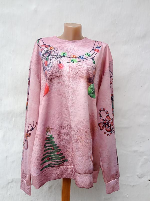 Красивый розовый лёгкий реглан в принт ёлочка,олень,батл, oversize 🔥