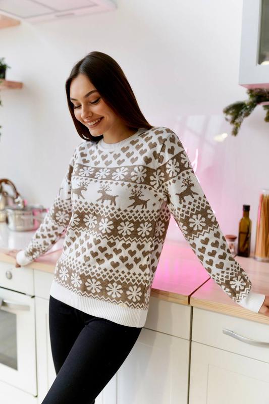 Новорічний светр, светр з оленями, вовняний светр, теплий светр