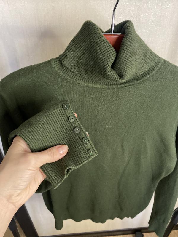 Кашемировый гольф б/у с пуговицами на рукавах Универсал с/м пишет, может пойти и на л Длина 58 см, ширина 45 см, рукав 70 см Очень приятный к телу