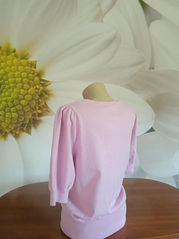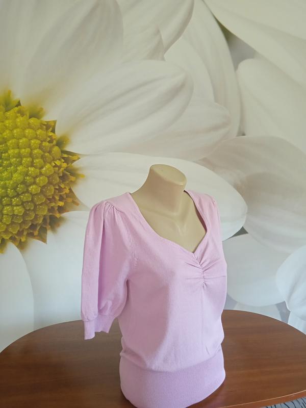 Классическая однотонная кофтонка с коротким рукавом светло фиолетового цвета.