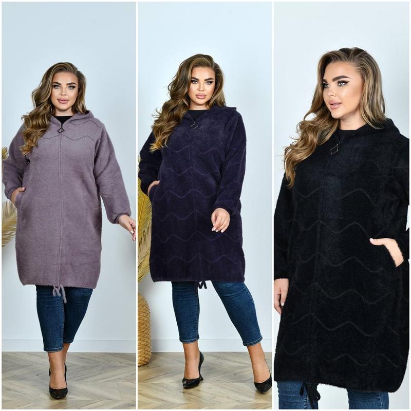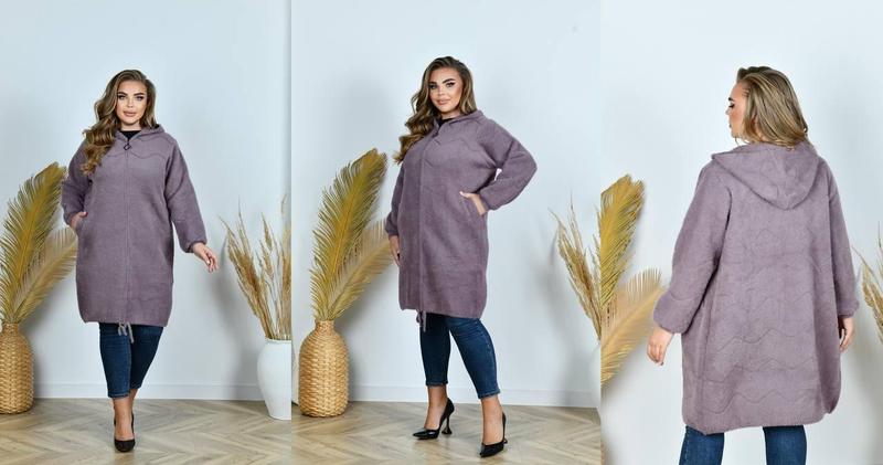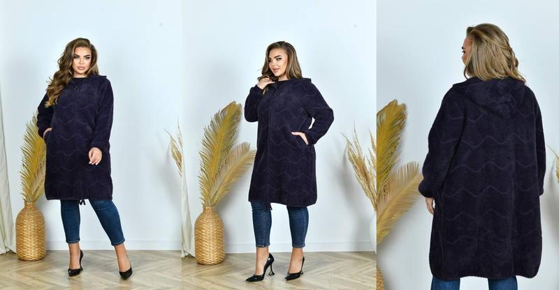 ➡️ Тканина: Альпака ➡️Розміри: 50-58 ➡️Колір: мокко, баклажан, чорний ➡️Довжина: 95см. ➡️Обхват грудей : 124см ➡️Обхват стегна: 126см ➡️Довжина рукава від плечового шва: 0.61