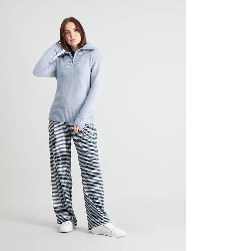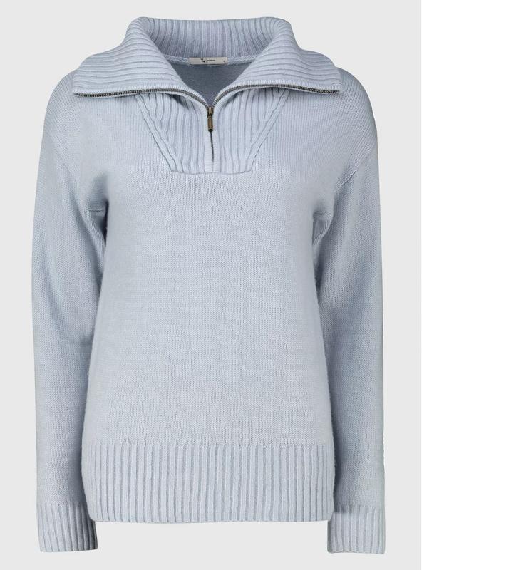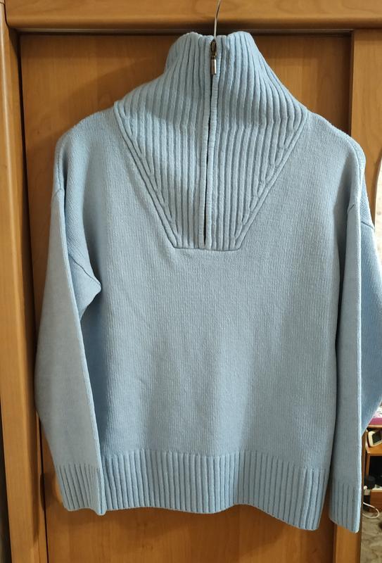Голубой свитер на молнии на воротнике с добавлением шерстиРазмер S-МФасон легкий оверсайз.Цвет нежный голубойМягкий и приятный к телу.Длина изделия по спинке 69 см, ширина под мышками 56 см, длина рукава от горловины 70 см