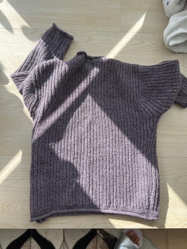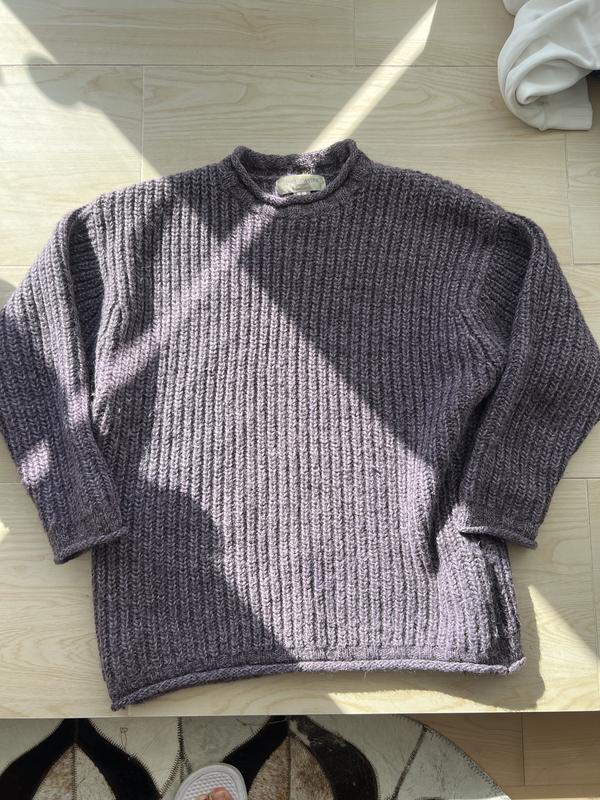 Подовжений лавандовий оверсайз светр вовна/ангора
