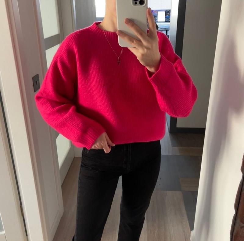 на фото светр вийшов червоний,але вжиття колір більш малиново-червоний, на останній фото більш менш схожий