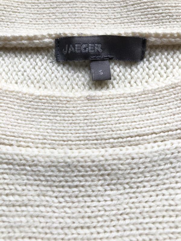 Статусно. Пафосно. Стильно. Качественно.Свитер премиум бренда JaegerТеплый,комфортный. Изюминка модели- запах на спинеРазмер на бирке SПог 56 смВнизу 45 смДлина 58 смРукав 69 см от горловины100% wool