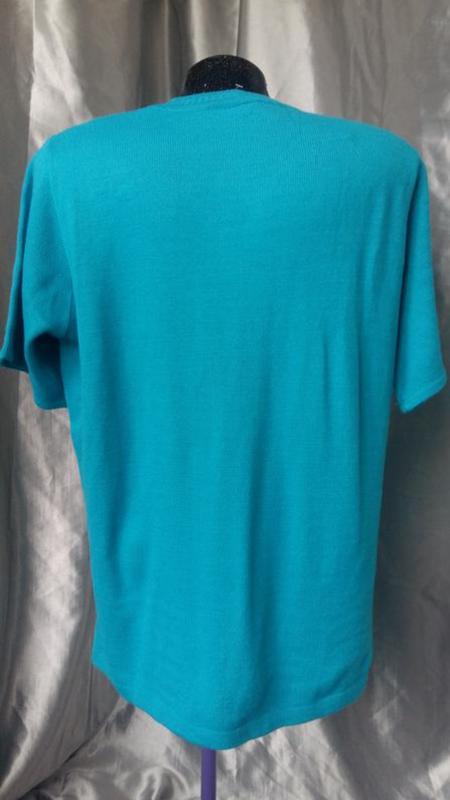 Кофта женская голубого цвета с коротким рукавом Evan, с разрезами по бокам, размер L, длина по спинке 63 см, по плечам от шва до шва 39 см, длина рукава 23 см, ширина по бедрам и под проймой 53 см, водолазка вязка, тянется, качество супер