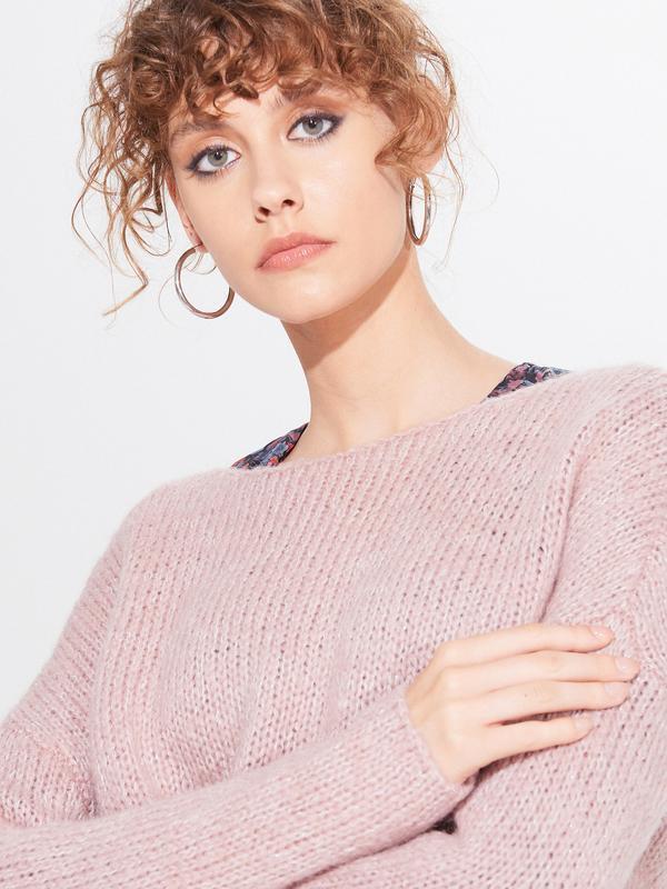 Женский вязаный уютный свитер с круглым вырезом, с длинным рукавом, короткий свитер, топ , джемпер свитшот персикова розовый