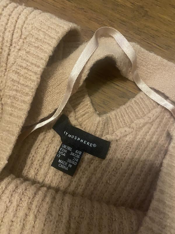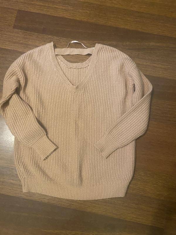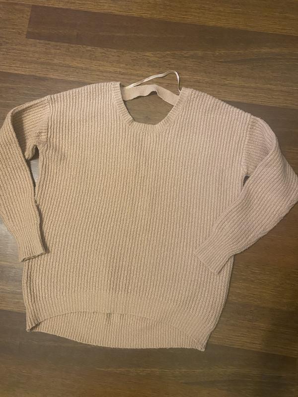 Нежный теплый оригинальный светер с открытой спиной невероятного пудрового цвета