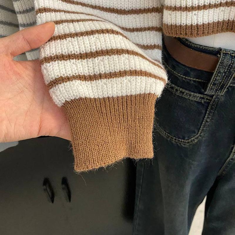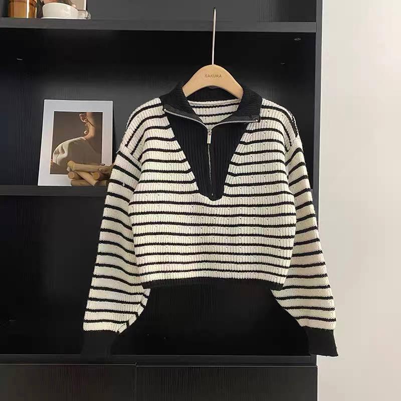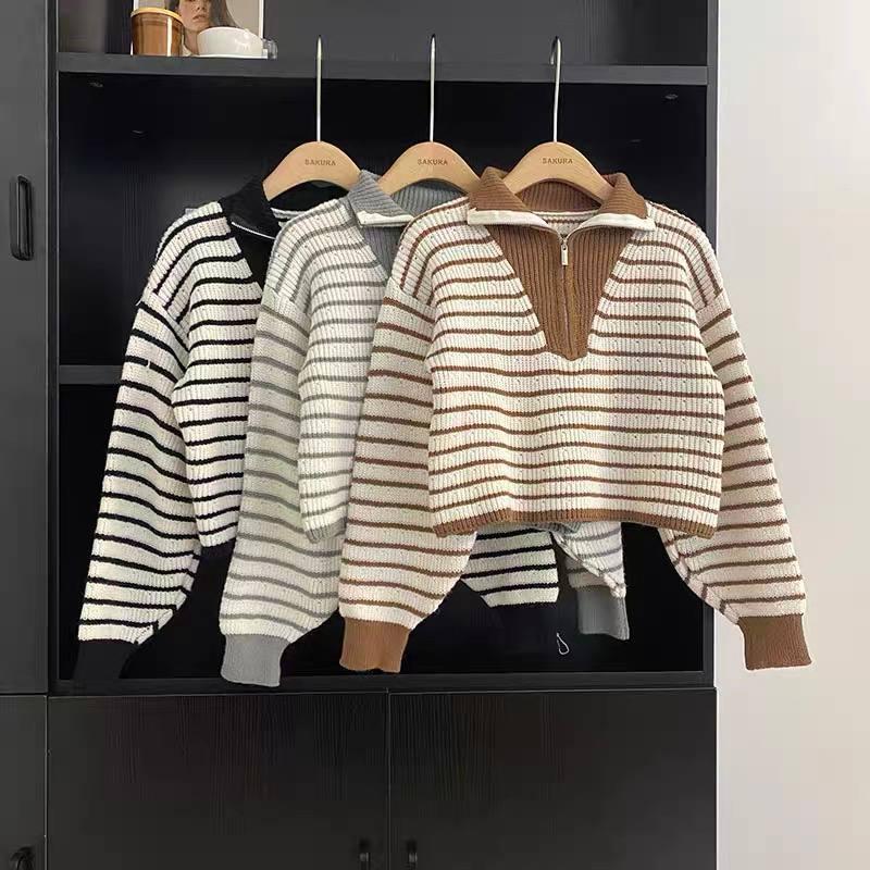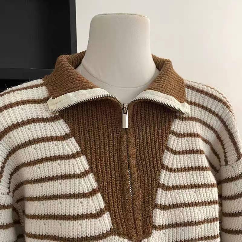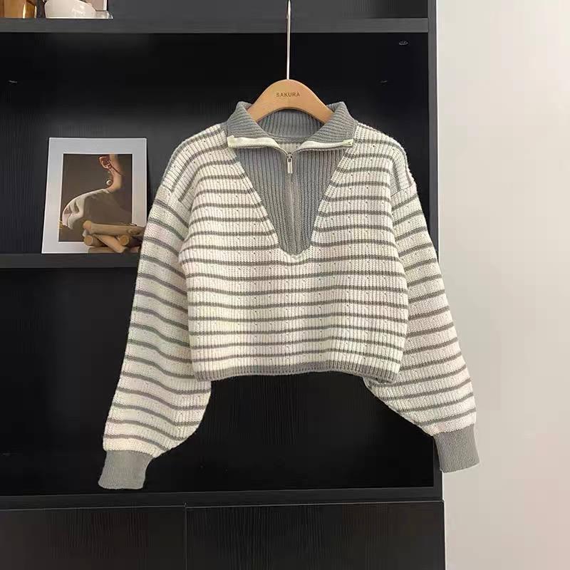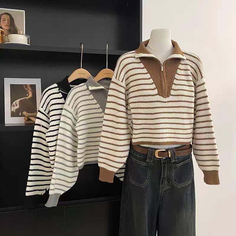 Свитер в полоску, с воротником-стойкой на молнии✨Мод 2304Цвет: бежевый, серый, черныйРазмер: универсал 42-44Тканина: вовна + акрилЦена 750 грн