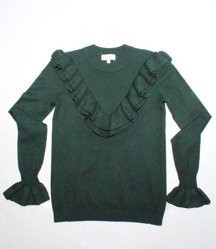 • тип товара: Вязаный джемпер с воланами изумрудного цвета
