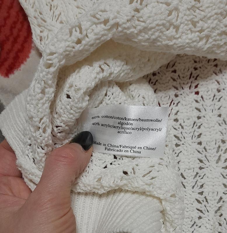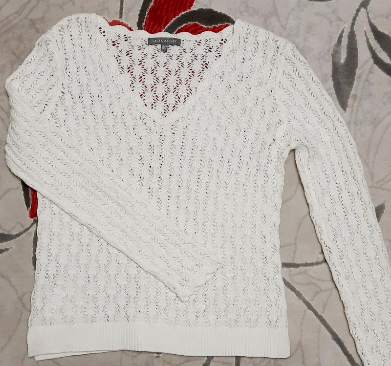 Весенняя кофта белого цвета. Ажурная машинная вязка. Стан идеален. Размер M/L. Ширина груди 41 см, ширина груди 48 см, ширина бедер 46 см, длина рукава 62 см, длина 57 см.