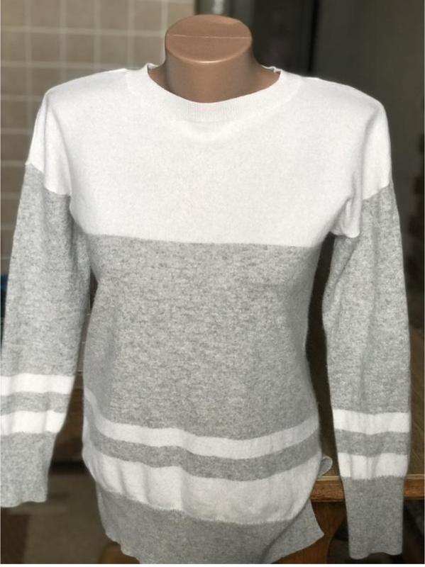Свитер красивого качества приятный и нежный на ощупь 100%кашемир Очень добротный свитерик, хорошего качества приятно на ощупь мягкий.Фасон свободный,теплый, совсем не колючий ПОГ 44см длина рукававод шии62см, длина свитера66см.
