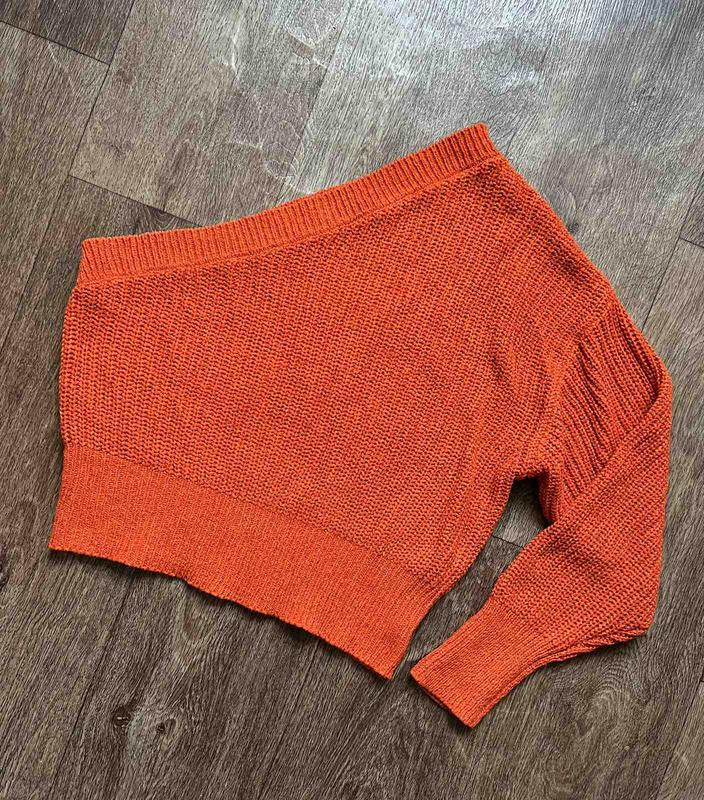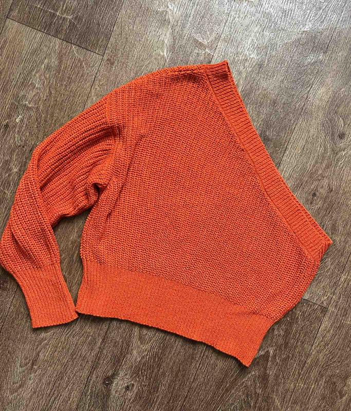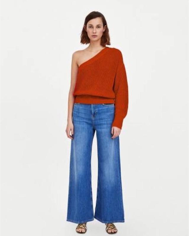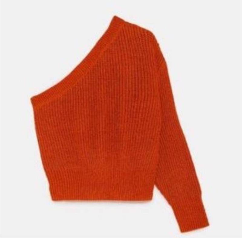 Свитер на одно плечо от Zara, размер S-M, длина 53 см, полуобхват груди в спокойном состоянии 50 см, приятный на ощупь, 57% акрил, 43% нейлон