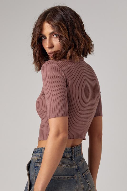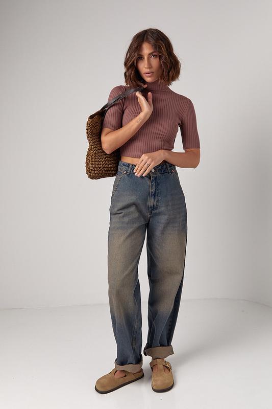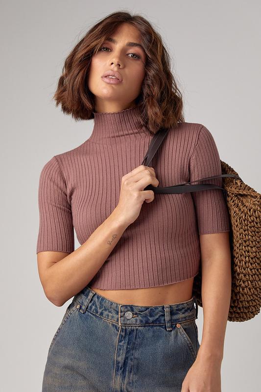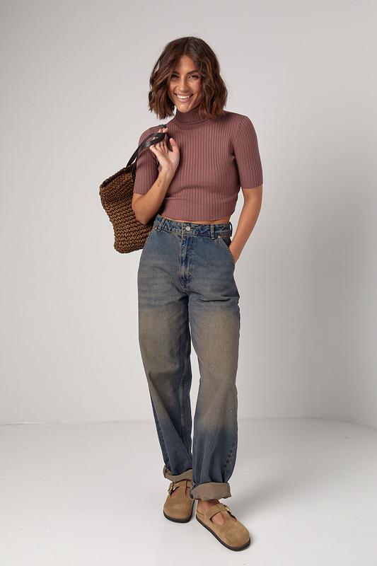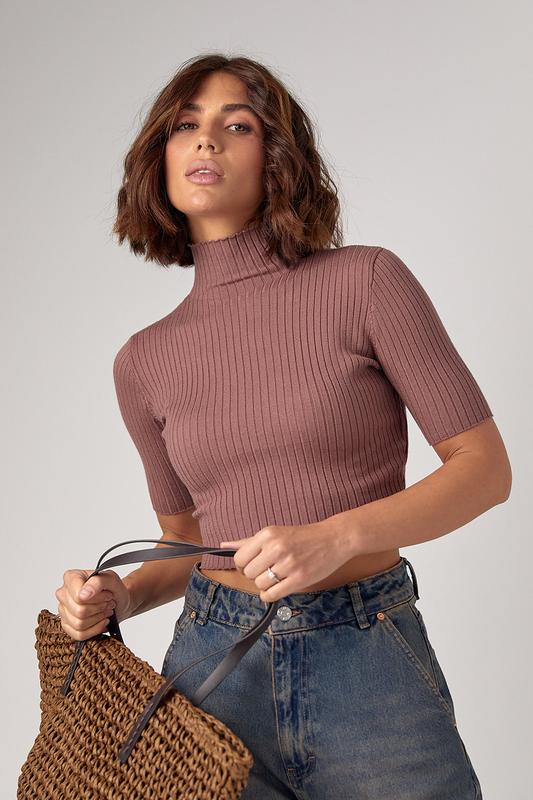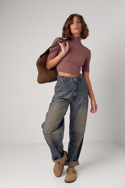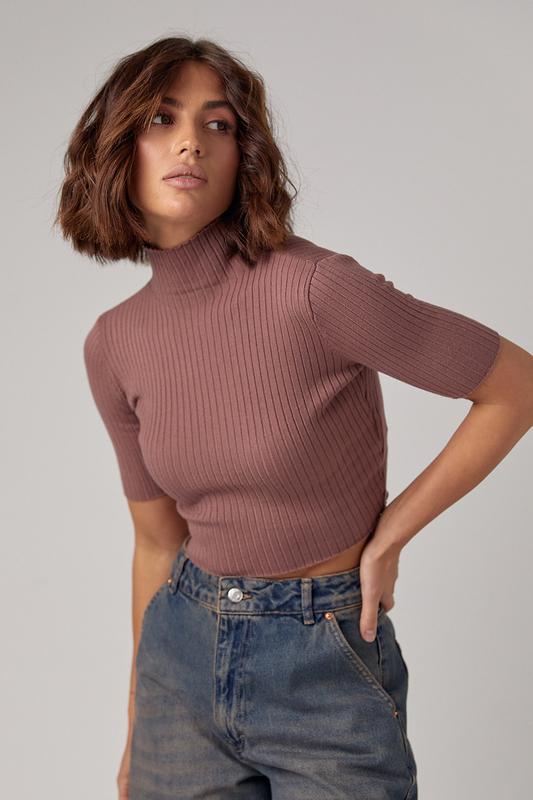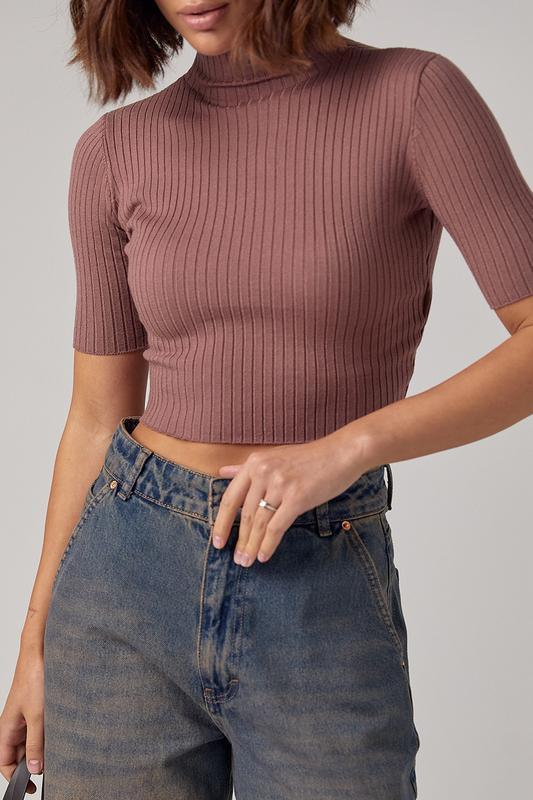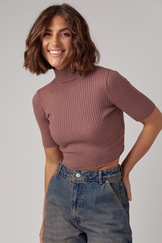 Стильная укороченная водолазка с коротким рукавом в широкий рубчик станет