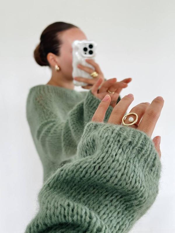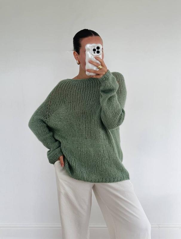 Воздушный, нежный и легкий свитер.Состав : шерсть альпака 100%.Его можно носить с юбкой, брюками, платьем и под джинсы.Универсальная и комфортная вещь на любой сезон.