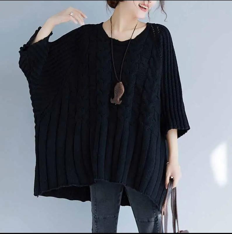 Теплый черный свитер вязаный оверсайз свитер свободного кроя