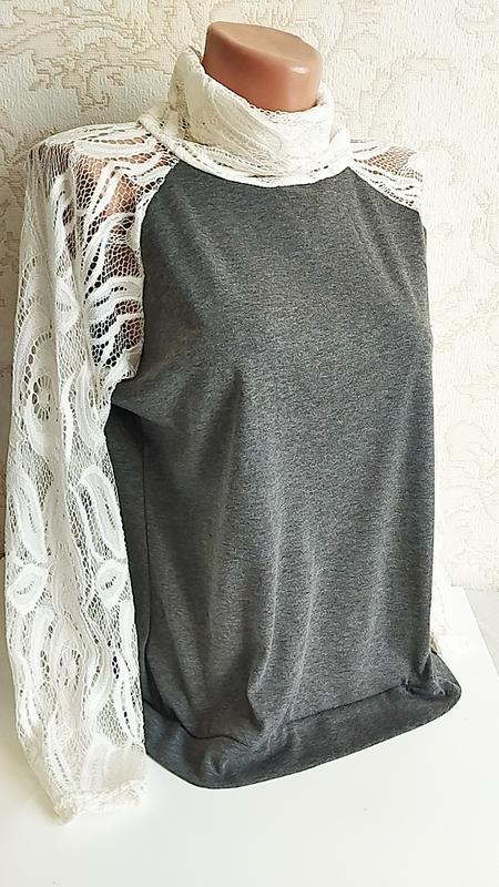 Теплый шерстяной свитер с вышивкой на рукавах с объемными рукавами