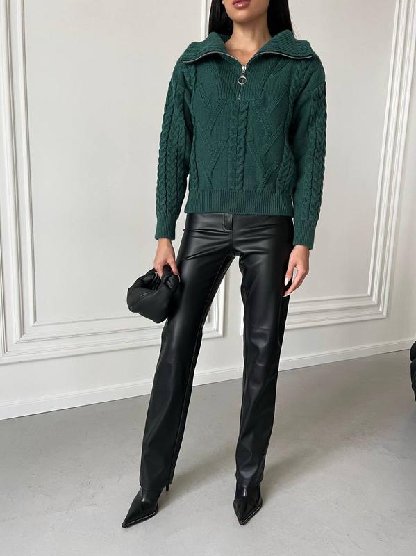 Уют и стиль в одном свитере! Наш арановый свитер с V-образным воротником и молнией - идеальное сочетание тепла и моды. Добавьте немного текстуры в свой гардероб с этой вдохновленной классикой.