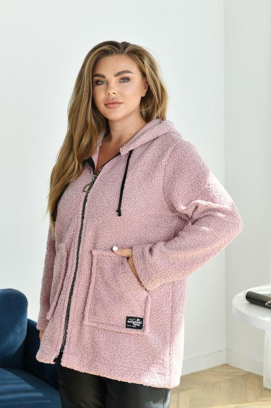 Кардиган «барашек» на молнии, накладные карманы. Ткань: баранчик букле При выборе размера обязательно ориентируйтесь на замеры готового изделия. Замеры готового изделия: 52 ОГ 122, длина - 79 см 54 ОГ 130, длина - 79 см 56 ОГ 138, длина - 80 см 58 ОГ 146, длина - 80 см