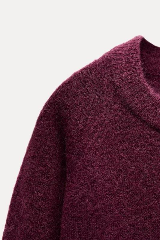 Фетровой свитер с добавлением альпаковой шерсти, круглым воротником и длинными рукавами.