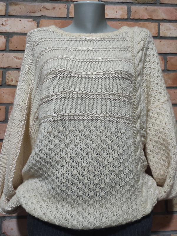 Hand made ручная работа винтажный свитер джемпер вязкая шерсть косы зимний теплый. Хорошо тянется. Приспущенный плечевой шов. Оригинальные пышные рукава. Интересная вязка несколькими орнаментами. Шерсть+акрил. Цвет "айвори". В реале смотрит невероятно красиво Стан идеален. Размер примерно 52 ориентируйтесь на замеры длина ОГ ОС рукав от воротника