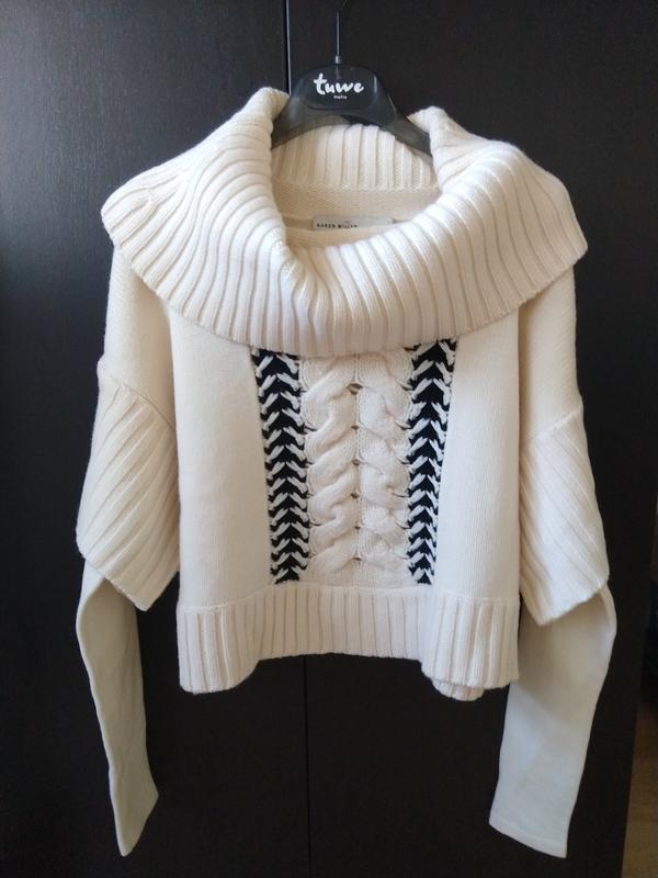 Светр кроп в новому стані.М'який,зовсім не колючий,плотної щільність.На розмір Sабо невеликий M.Рукав від горловини 68, довжина 44.Якість неймовірна.Буде на зріст до 160 на мою думку.