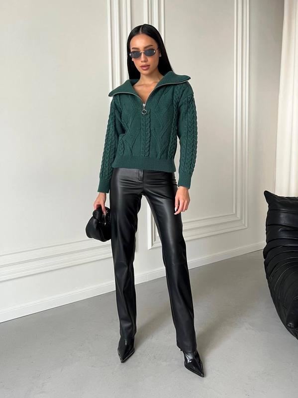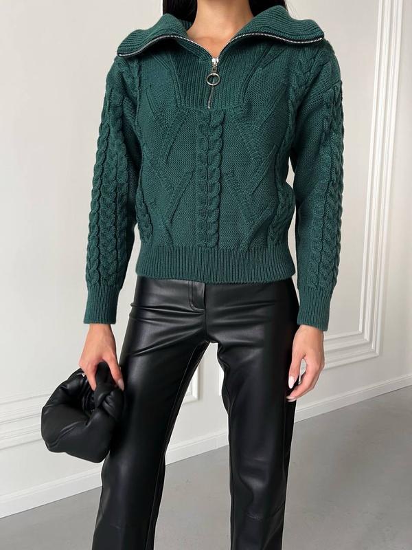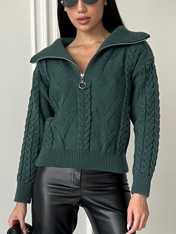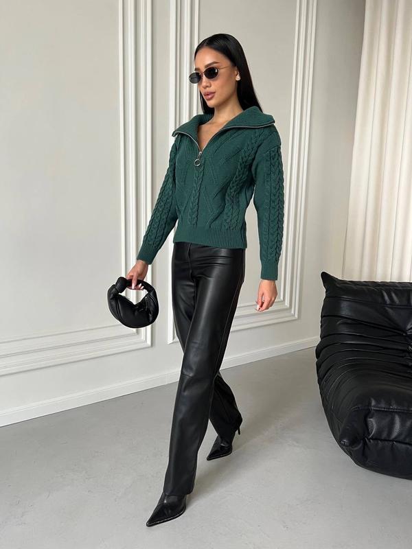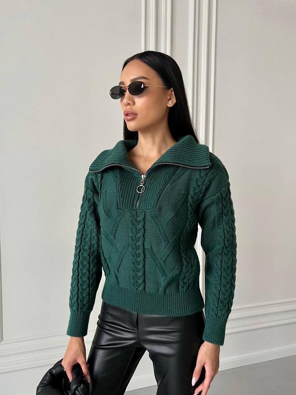 Уют и стиль в одном свитере! Наш арановый свитер с V-образным воротником и молнией - идеальное сочетание тепла и моды. Добавьте немного текстуры в свой гардероб с этой вдохновленной классикой.