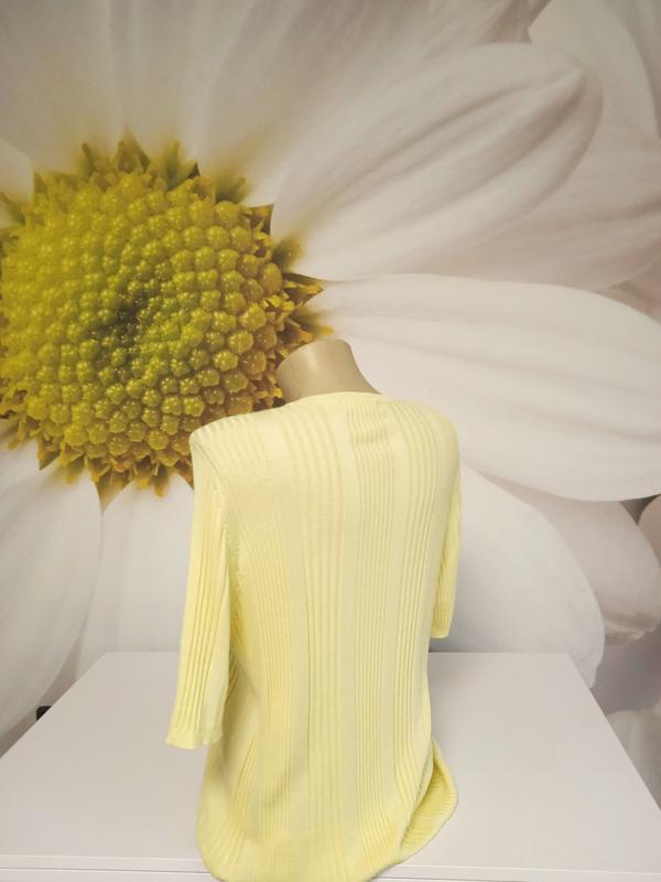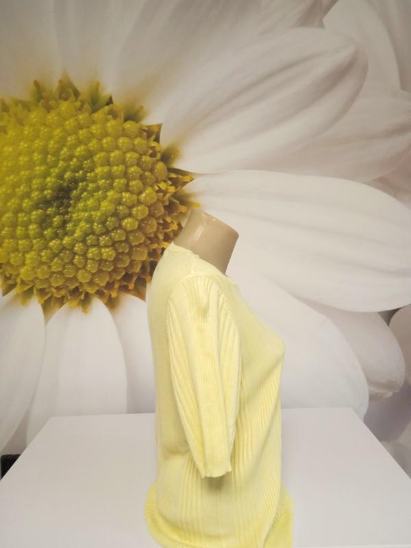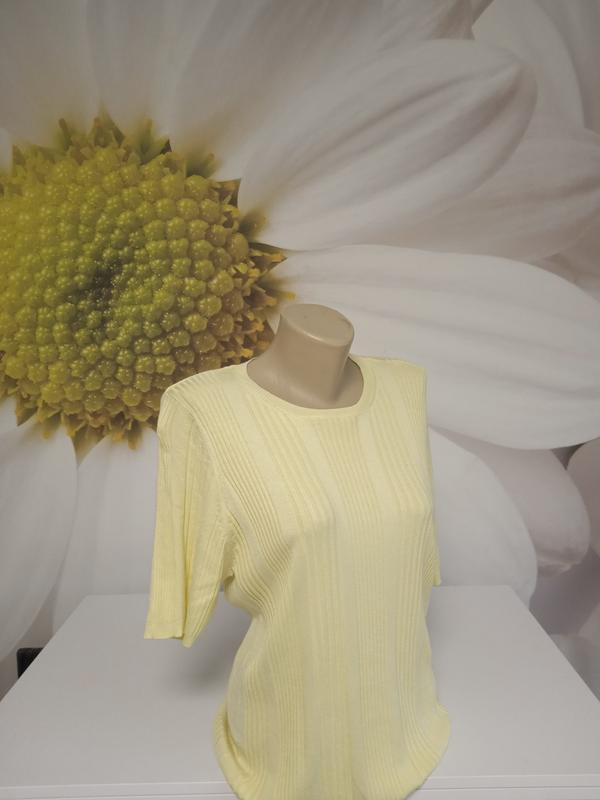 Классическая однотонная кофтонка с коротким рукавом светло желтого цвета.