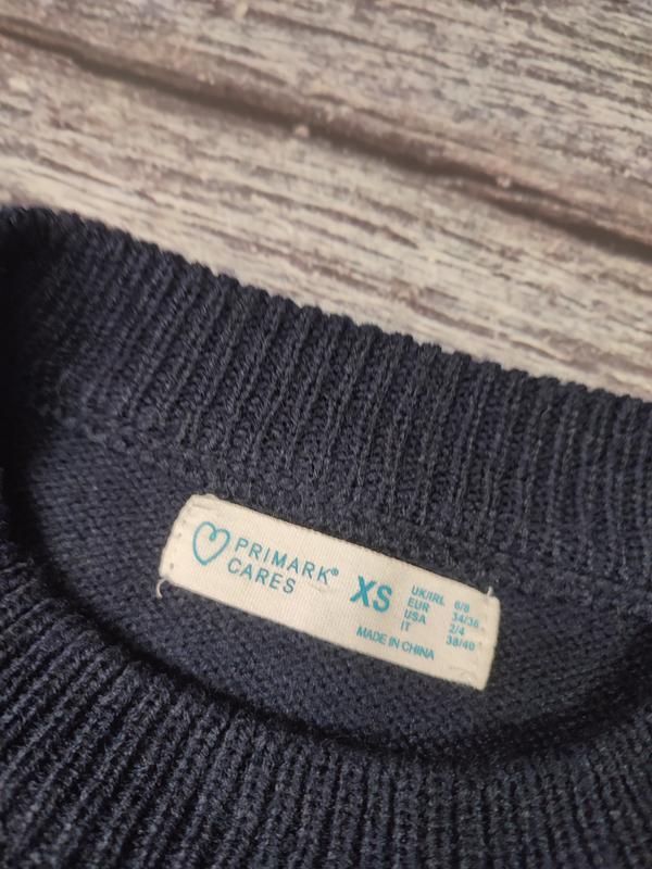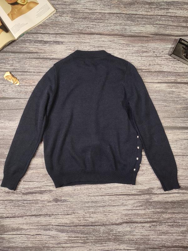 Новогодний шерстяной теплый свитер синий с зимним новогодним принтом р s