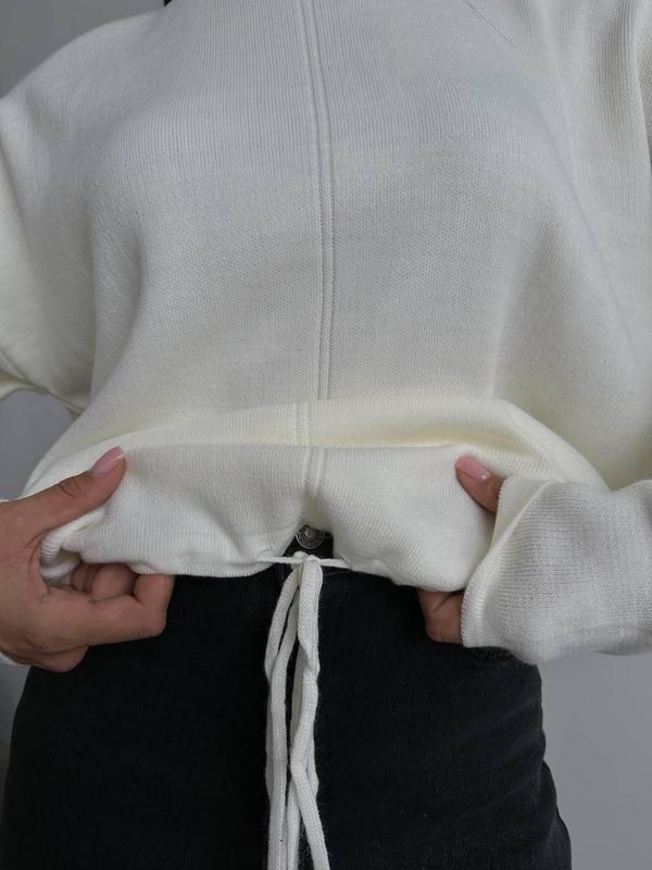 Внизу есть завязка. Благодаря чему легко регулировать длину.