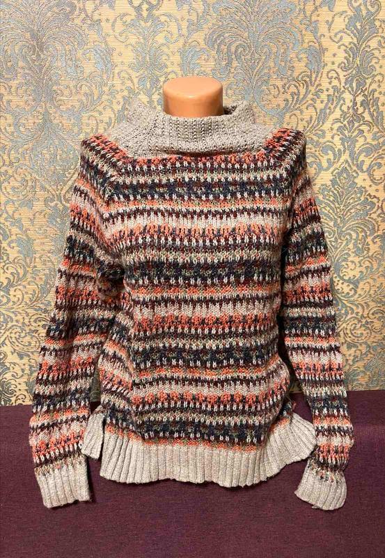 Теплый свитер в отличном состоянии, по бокам разрезы, сзади чуть длинее Размер наш 46 /48 Замеры Длина ок 68 Пог 50 /56