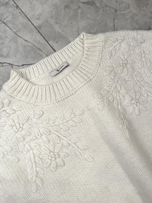 Невероятно красивый актуальный белый свитер с завязками паутинка, облачко