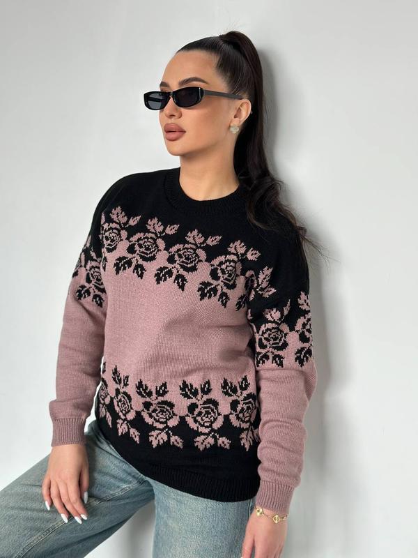 Женский свитер с цветочным орнаментом Размер: универсал 42-56 Ткань: 50% акрил; 50% вовна Цвета: сирень, молочный, пудра, зеленый, небесный ✨ Свитер с цветочным орнаментом - сочетание нежности, комфорта и практичности. Тонкий, приятный к телу, не колется. Красиво садится по фигуре, имеет немного свободный крой. Идеальный вариант на осень и весну!🧶💐 Замеры: Длина рукава от горловины 70 см, сам рукав 49 см. Ширина 60 см Длина изделия 68 см Код: 5073