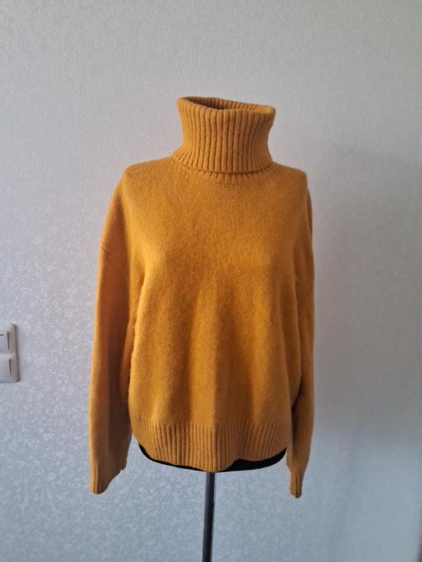 Третья единица в подарок (при оплате на карточку продавца) Красивый теплый свитер гольф H&M р.42-44 Vigorous плечи-приспущенные свободный и комфортный полиэстр +акрил + шерсть цвет: оранжевый замеры на фото состояние изделия-идеальный, без дефектов мягкий и приятный на ощупь горловина плотно прилегает к шее, рукава широкие оплата на картку Приватбанку возврат нет