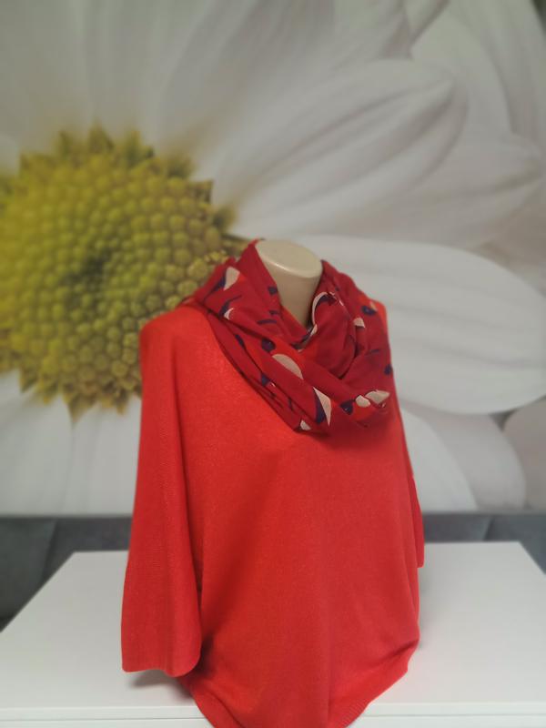 Классическая однотонная кофтонка с коротким рукавом насыщено красного цвета. Легкая и удобная. Приятная на ощупь. Гладкая машинная вязка. Нить средней толщины. Тянется с легкостью. Ложится свободно. Есть вырез-декольте по мере. Красиво смотрится с шарфом в тон в комплекте (шарф может быть заменен, но в цвете). Есть размеры.