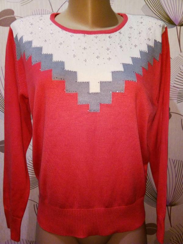 РАЗМЕР 50.ЦВЕТ КОРАЛЛ.СО СТРАЗАМИ.МАТЕРИАЛ ВИСКОЗА ПОГ 52 СМ,ПОТ 43-55 СМ РЕЗИНКА.ДЛИНА 58 СМ,РУКАВ 57 СМ