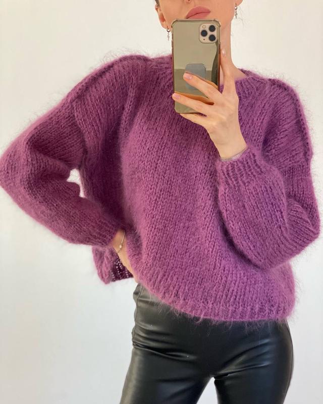 Базовий светр - теплий і затишний. Пов'язаний вручну з пухнастого мохера. Класичний, позачасовий дизайн, нічого зайвого, ви з легкістю зможете вписати його в свій гардероб. Фасон oversize допоможе залишатися завжди в розслабленому стані, відчувати комфорт і невимушеність.