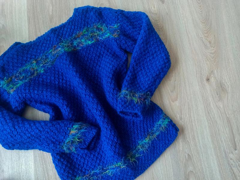 В'язаний теплий светрик. А цей насичено синій колір😍 Ну просто ракета🚀розмір Lручна робота заміри:довжина 62смпог 50-60 смширина по низу 45-56см